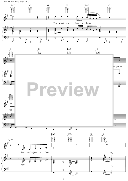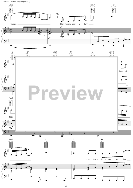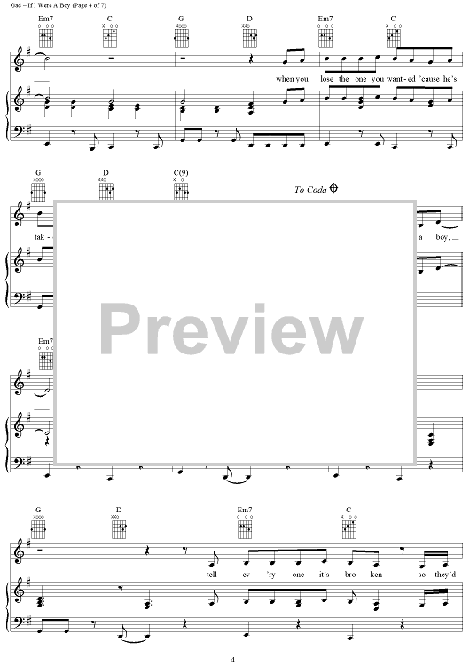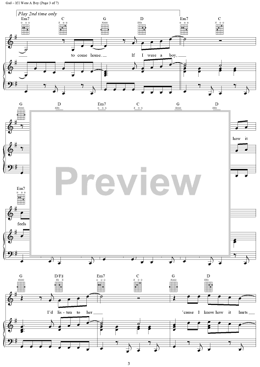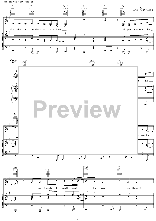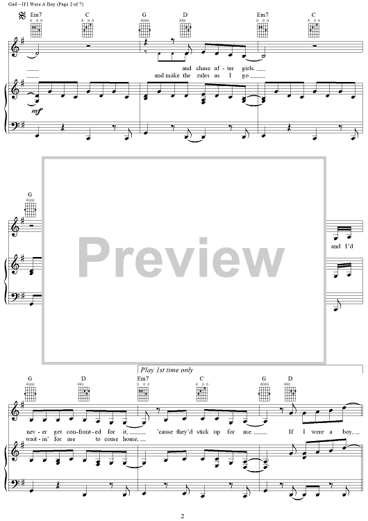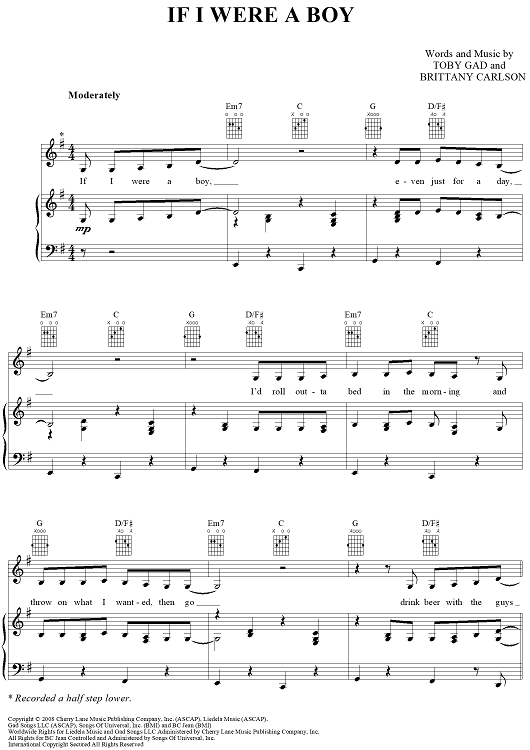 Digital Sheet Music for If I Were a Boy by Beyonce, Toby Gad scored for Piano/Vocal/Chords; id:409721