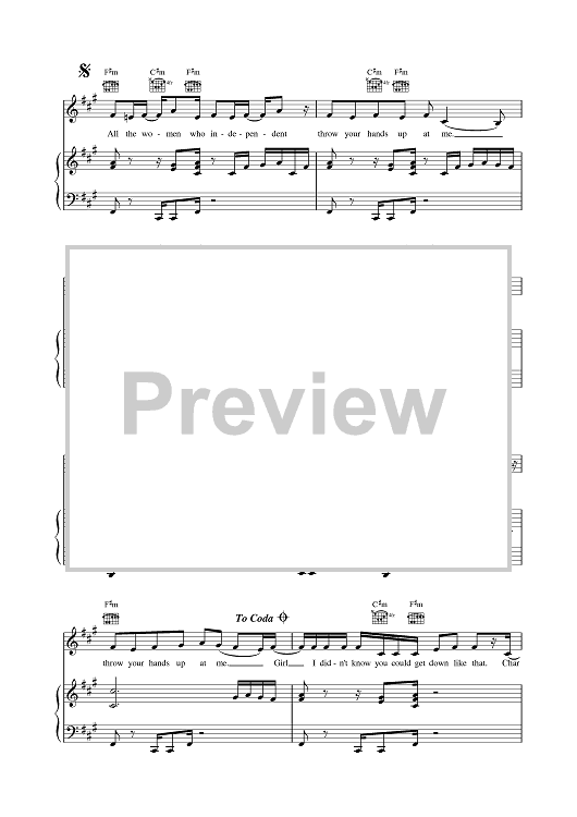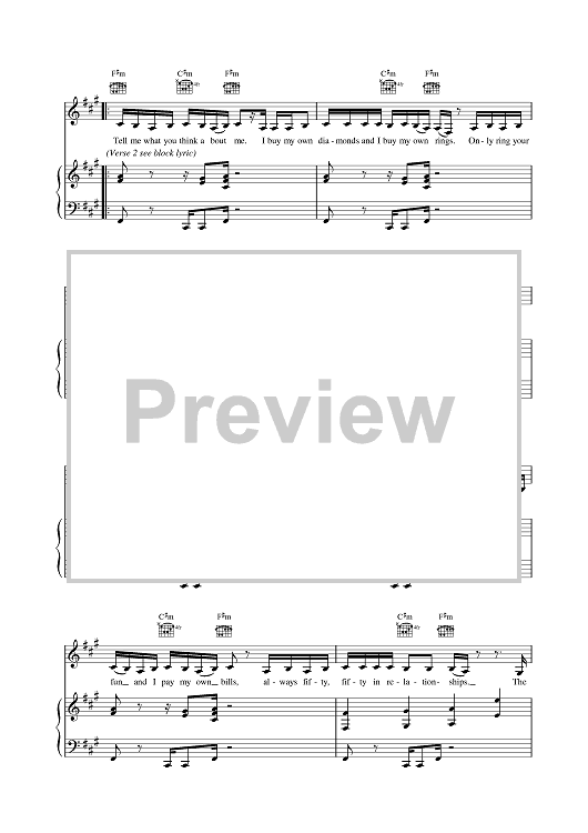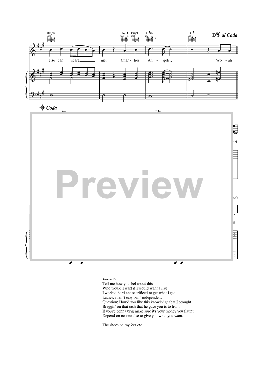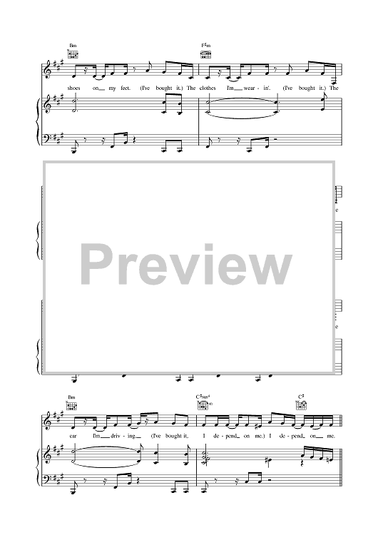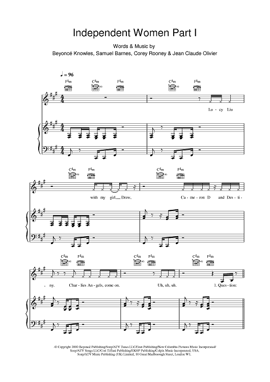 Digital Sheet Music for Independent Women Part I by Destiny's Child, Beyonce, Cory Rooney, Samuel Barnes scored for Piano/Vocal/Chords; id:380083