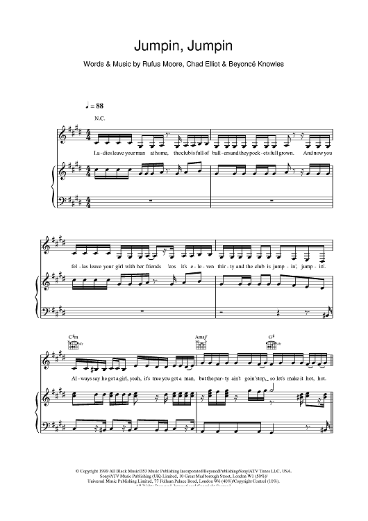Digital Sheet Music for Jumpin, Jumpin by Destiny's Child, Chad Elliott, Rufus Moore, Beyonce scored for Piano/Vocal/Chords; id:380084