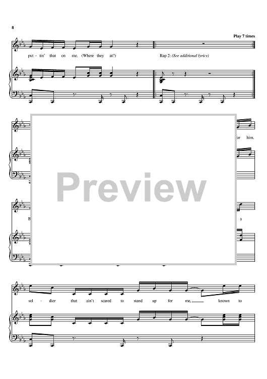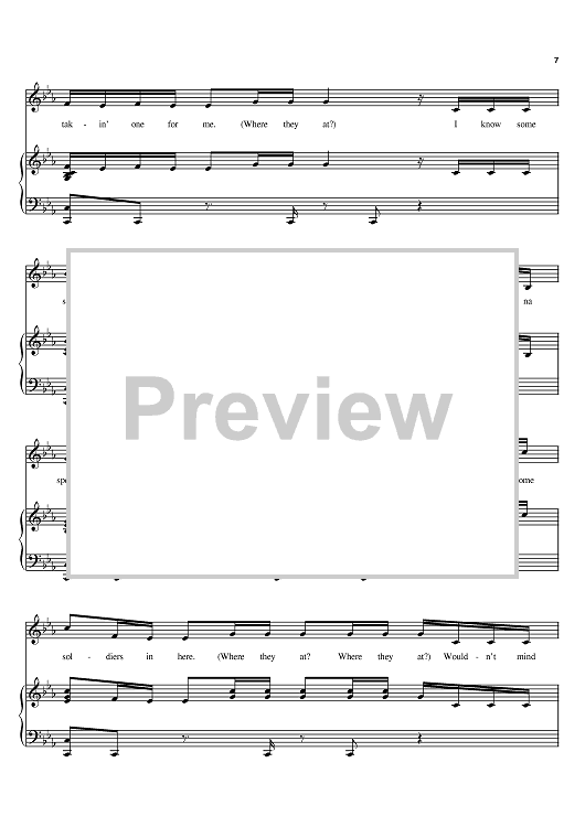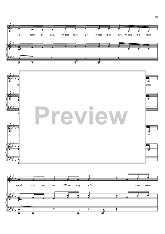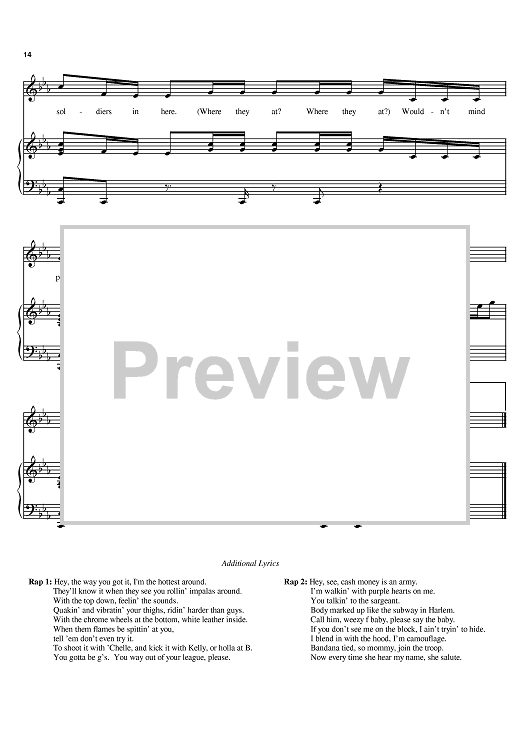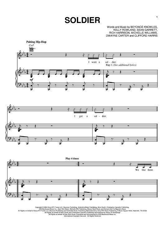 Digital Sheet Music for Soldier by Destiny's Child, Beyonce, Kelly Rowland, Rich Harrison, Sean Garrett, Dwayne Carter, Clifford Harris, Michelle Williams scored for Piano/Vocal/Chords; id:383855