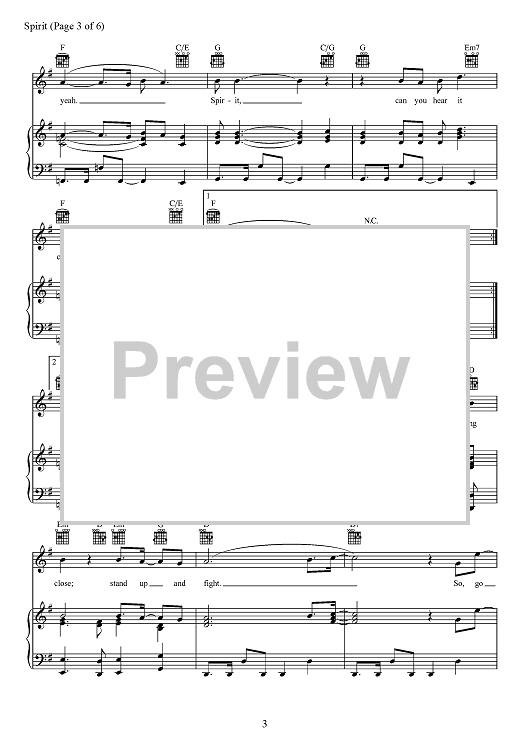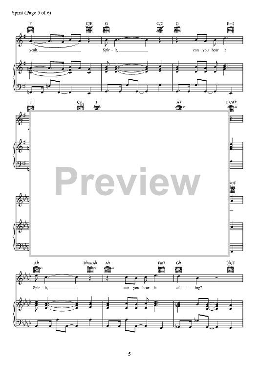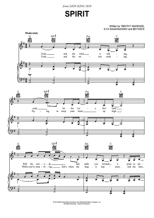 Digital Sheet Music for Spirit - from Disney's The Lion King 2019 by Beyonce, Ilya Salmanzadeh, Timothy McKenzie scored for Piano/Vocal/Chords; id:467785