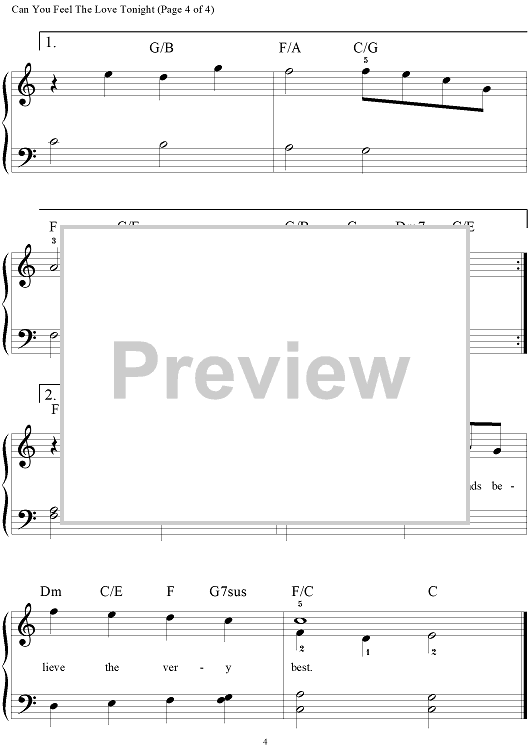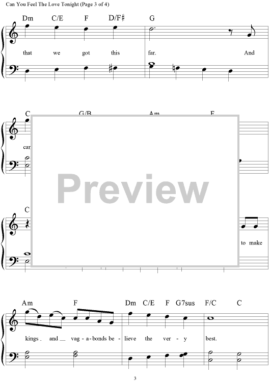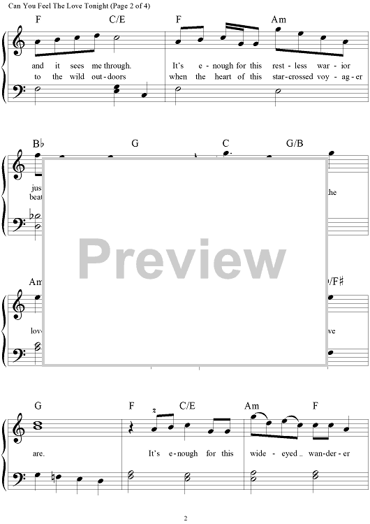 Digital Sheet Music for Can You Feel The Love Tonight by Elton John, Tim Rice scored for Big Note Piano; id:445004