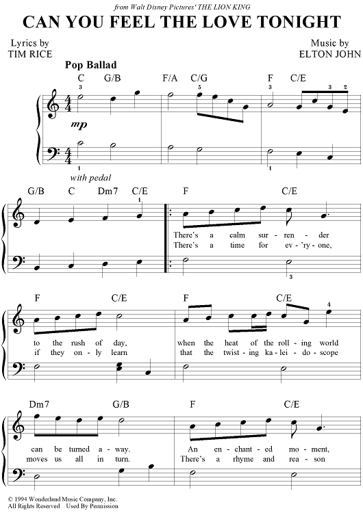 "Can You Feel The Love Tonight" Sheet Music by Elton John