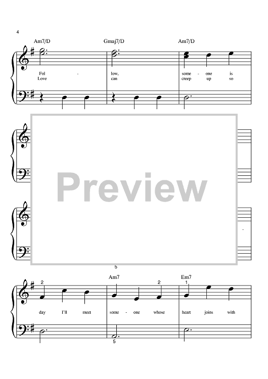 Digital Sheet Music for Follow Your Heart by Mark Hollmann, Greg Kotis scored for Big Note Piano; id:392216