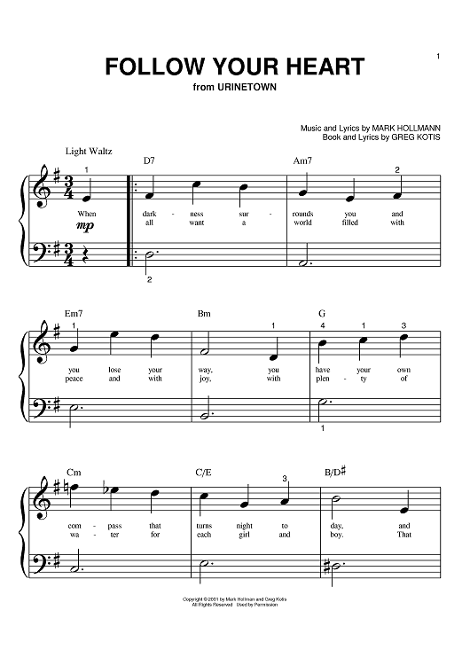 "Follow Your Heart" Sheet Music by Mark Hollmann