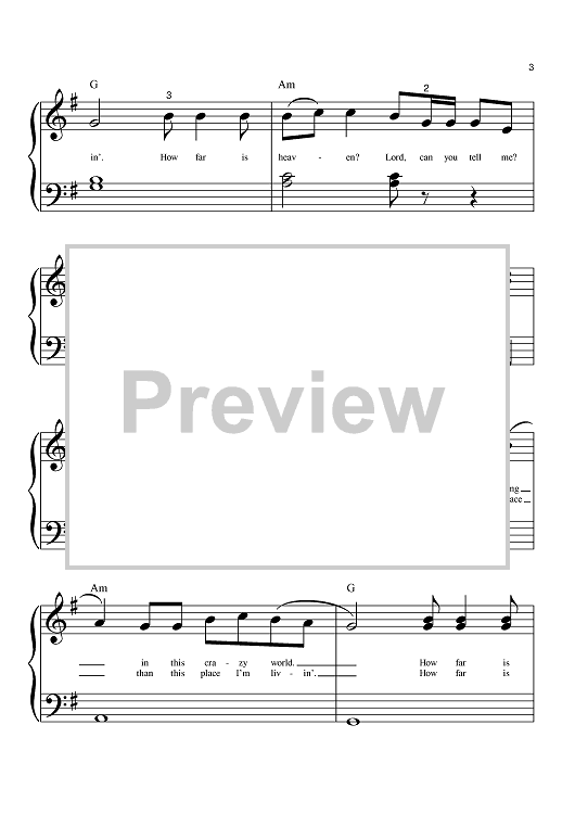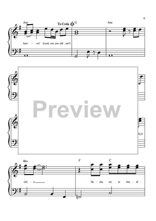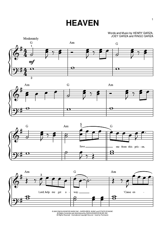 Digital Sheet Music for Heaven by Henry Garza, Joey Garza, Ringo Garza, Los Lonely Boys scored for Big Note Piano; id:381758
