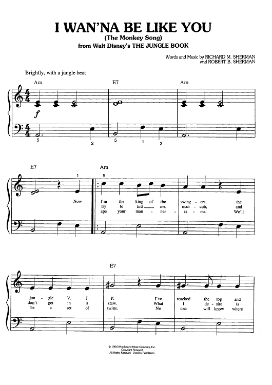 "I Wanna Be Like You (The Monkey Song)" Sheet Music by Richard M. Sherman