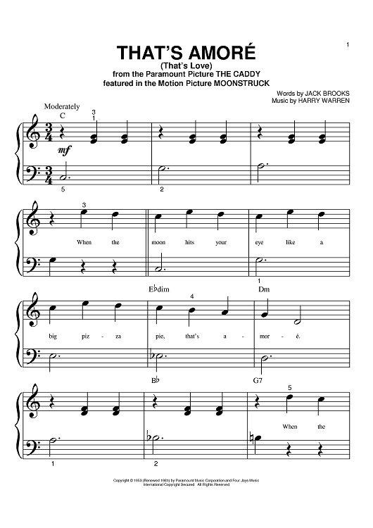 Digital Sheet Music for That's Amore (That's Love) by Harry Warren, Dean Martin, Jack Brooks scored for Big Note Piano; id:398314