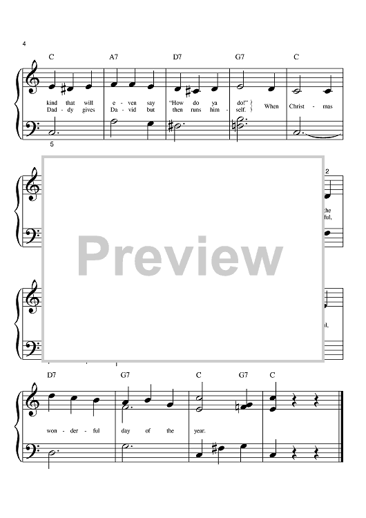 Digital Sheet Music for The Most Wonderful Day Of The Year by Johnny Marks scored for Big Note Piano; id:397923