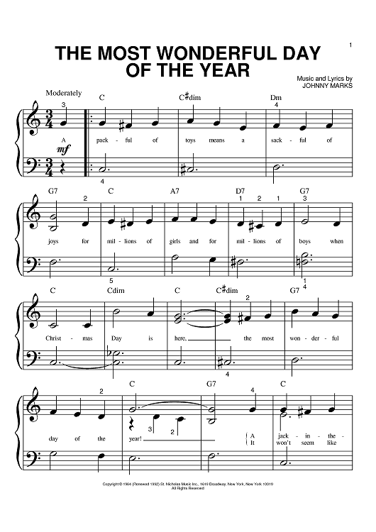 "The Most Wonderful Day Of The Year" Sheet Music by Johnny Marks