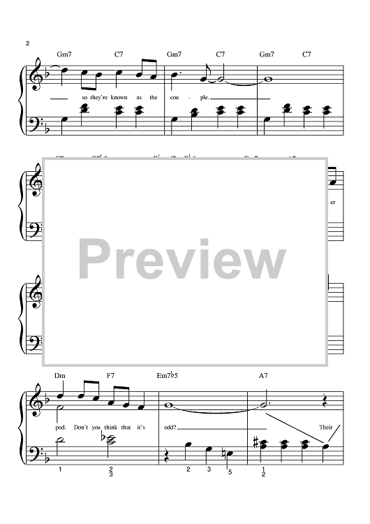 Digital Sheet Music for The Odd Couple by Sammy Cahn, Neal Hefti scored for Big Note Piano; id:385290