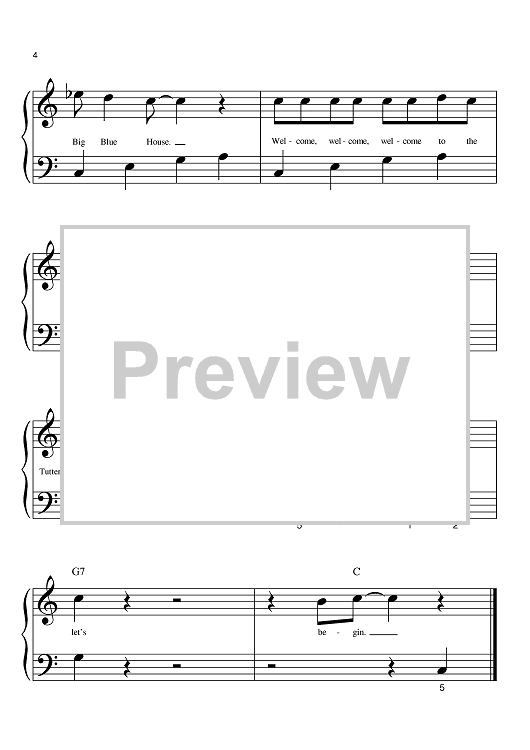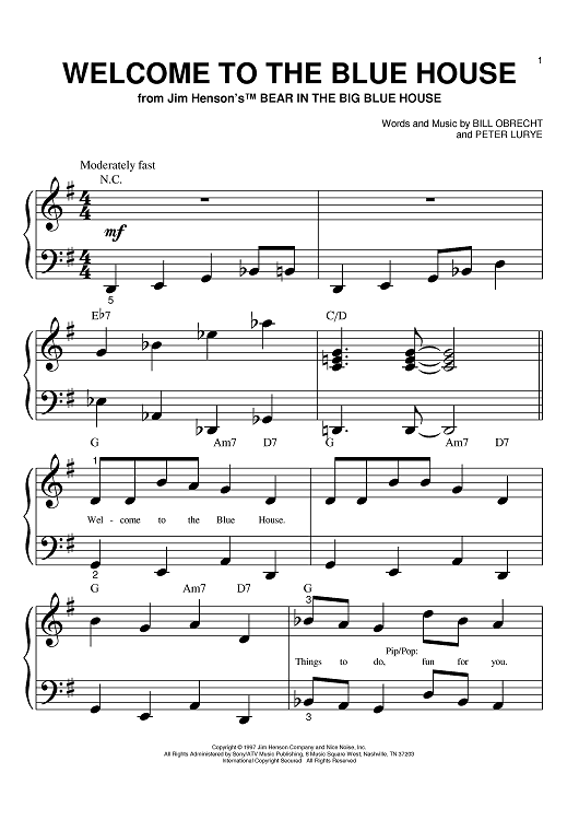 Digital Sheet Music for Welcome To The Blue House by Peter Lurye, Bill Obrecht scored for Big Note Piano; id:372817