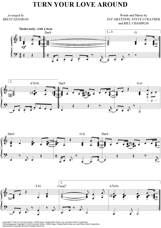 Digital Sheet Music for Turn Your Love Around by Steve Lukather, Jay Graydon, Bill Champlin, Brent Edstrom scored for Piano Solo; id:465288