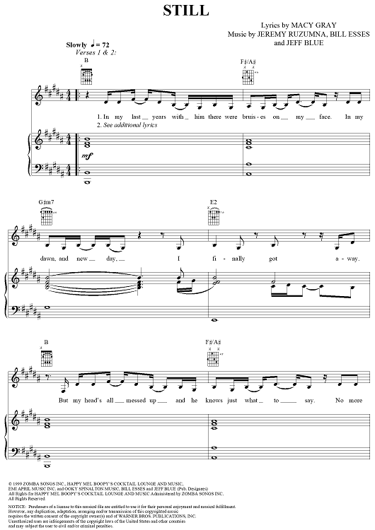 Digital Sheet Music for Still by Macy Gray, Jeremy Ruzumna, Bill Esses, Jeff Blue scored for Piano/Vocal/Chords; id:283030