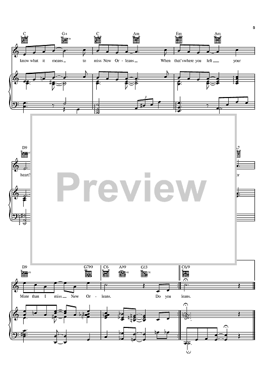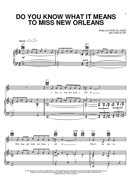 Digital Sheet Music for Do You Know What It Means To Miss New Orleans by Louis Armstrong, Billie Holiday, Harry Connick, Jr., Louis Alter, Eddie De Lange scored for Piano/Vocal/Chords; id:373252