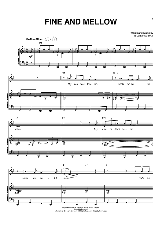 "Fine And Mellow" Sheet Music by Billie Holiday