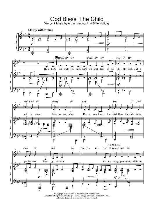 "God Bless' The Child" Sheet Music by Billie Holiday