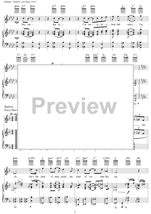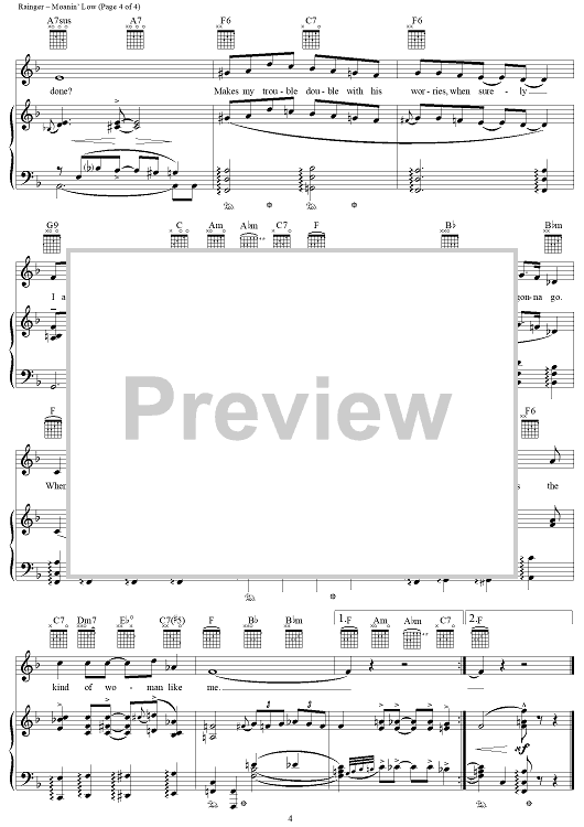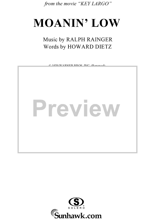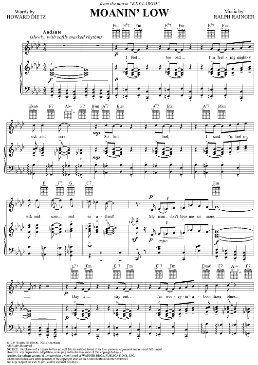 Digital Sheet Music for Moanin' Low by Billie Holiday, Teddy Wilson, Libby Holman, Howard Dietz, Ralph Rainger, Harry James scored for Piano/Vocal/Chords; id:113339