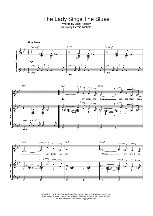 Digital Sheet Music for The Lady Sings The Blues by Billie Holiday scored for Piano/Vocal/Chords; id:377107