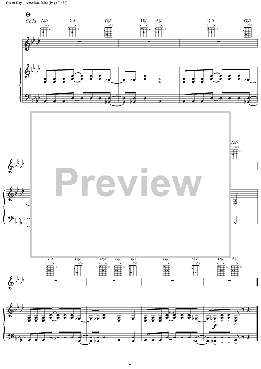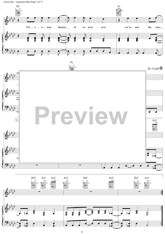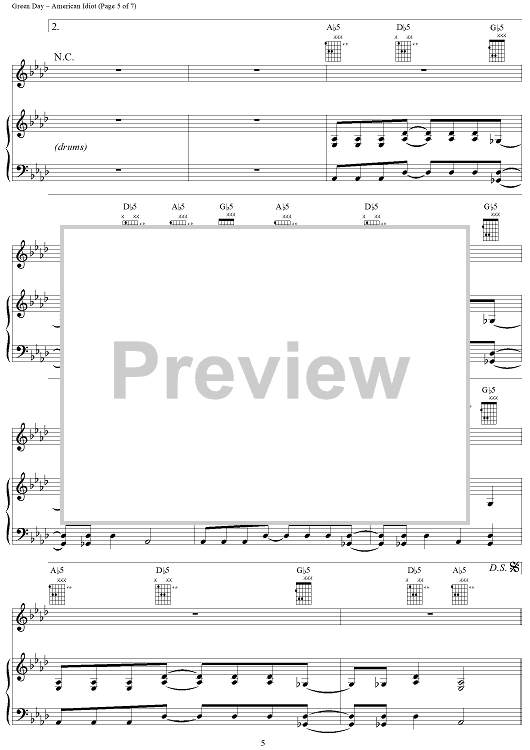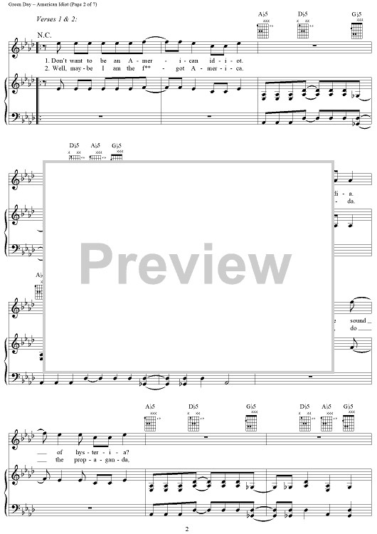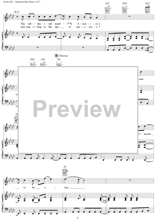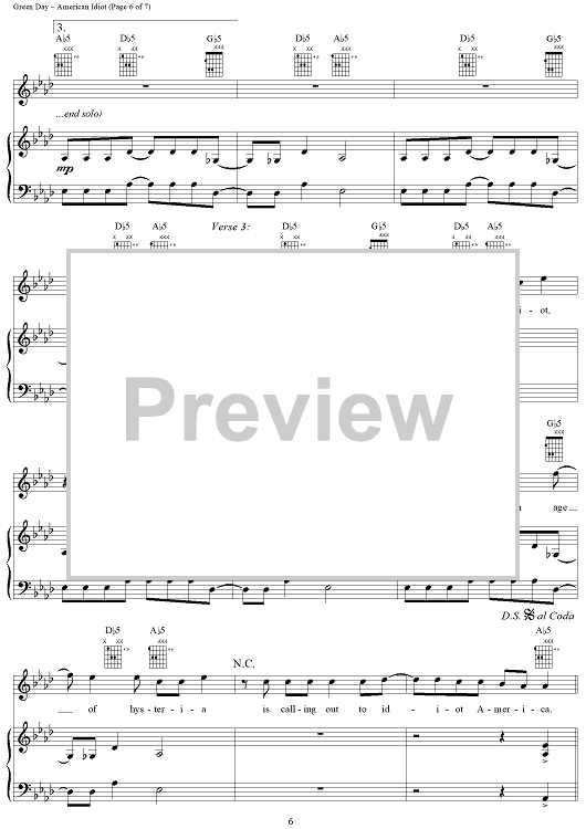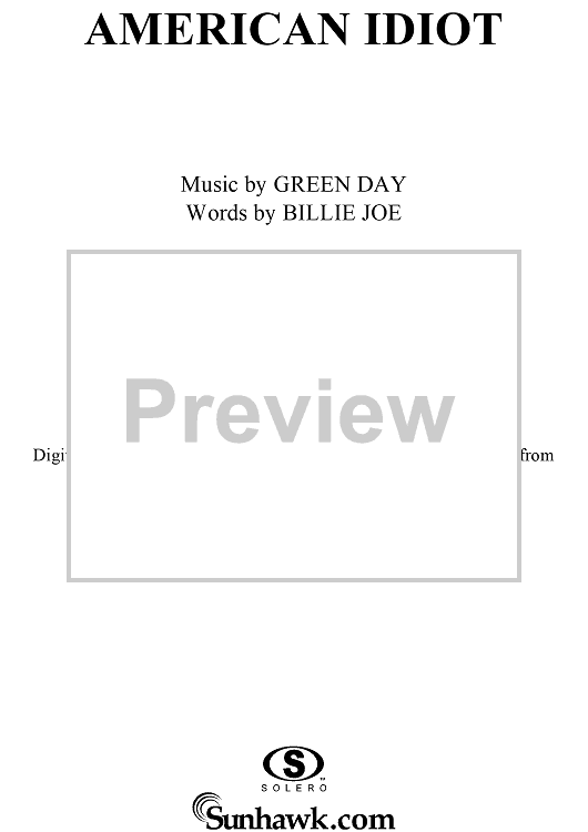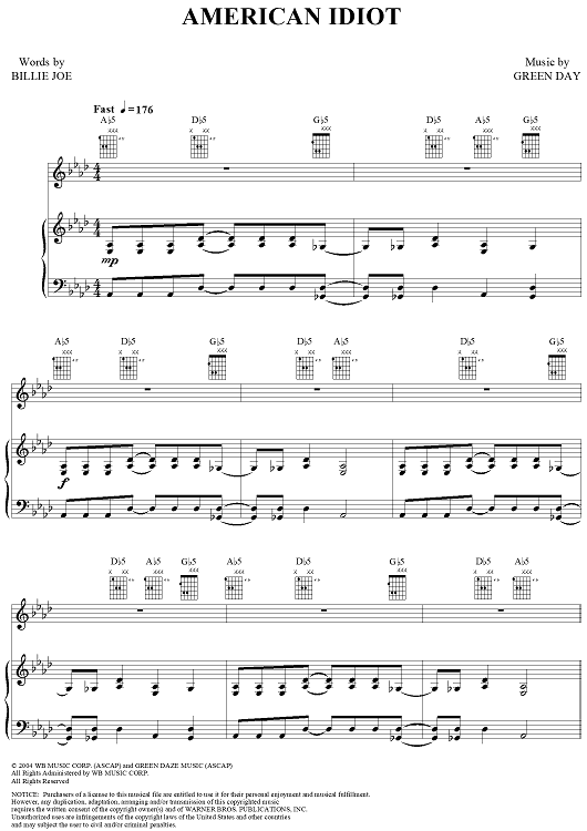 Digital Sheet Music for American Idiot by Green Day, Billie Joe scored for Piano/Vocal/Chords; id:307563