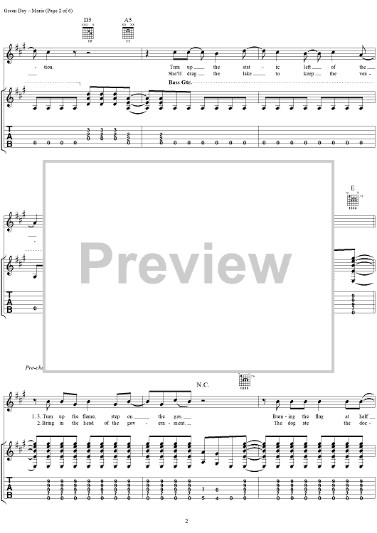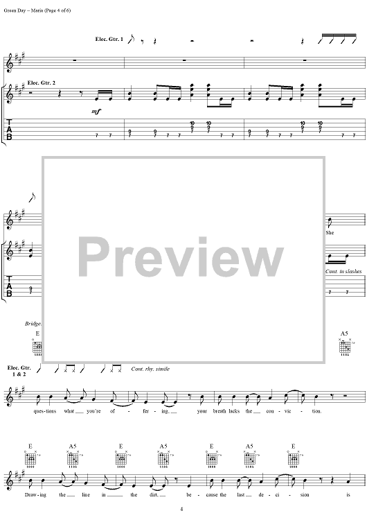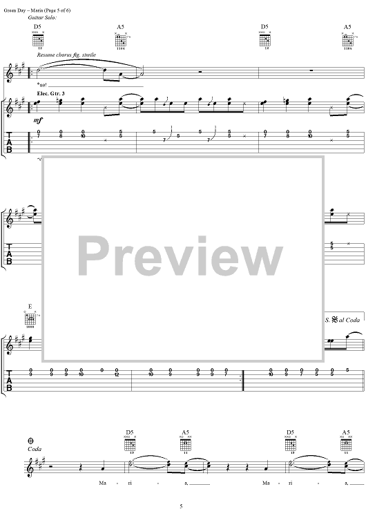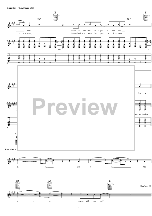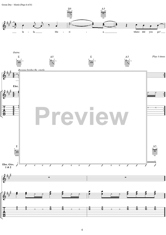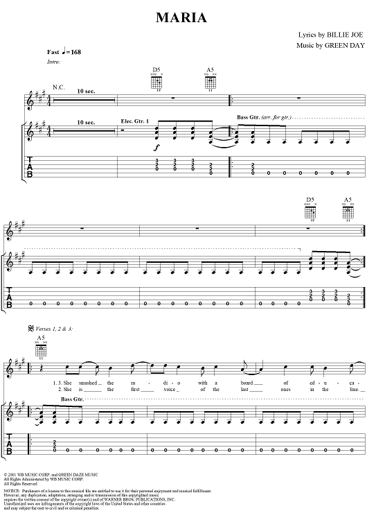Digital Sheet Music for Maria by Green Day, Billie Joe scored for Guitar Tab/Vocal; id:287702