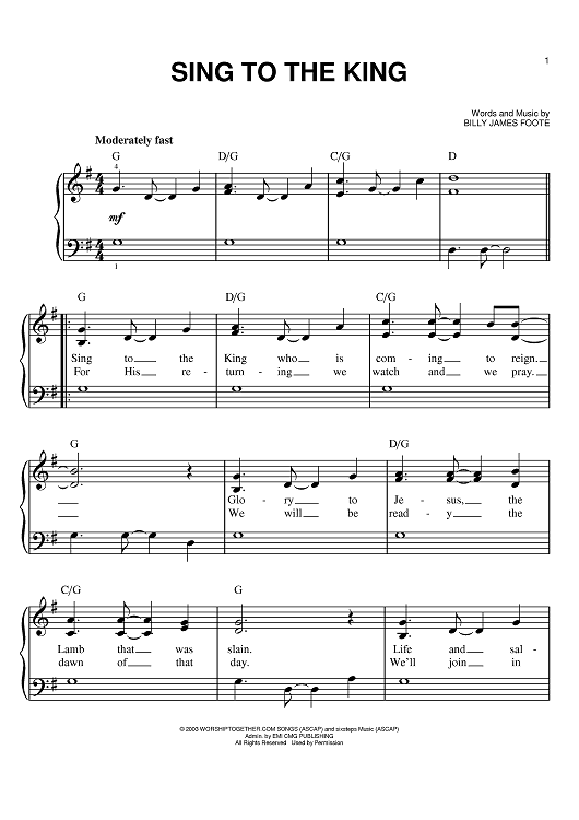 Digital Sheet Music for Sing To The King by Billy James Foote scored for Easy Piano; id:401814