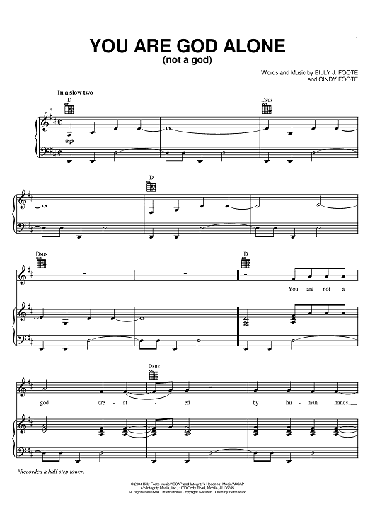 Digital Sheet Music for You Are God Alone (Not A God) by Billy James Foote, Cindy Foote, Phillips, Craig and Dean scored for Piano/Vocal/Chords; id:381142