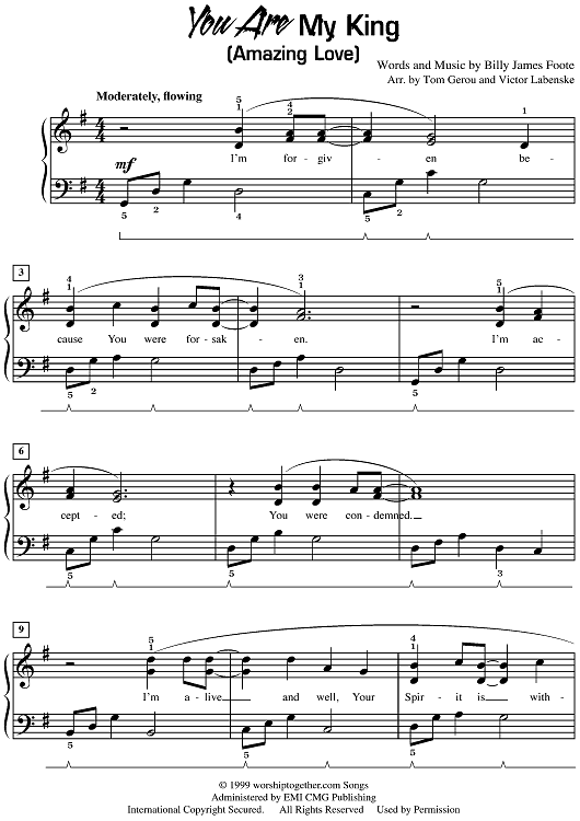 "You Are My King (Amazing Love)" Sheet Music by Billy James Foote