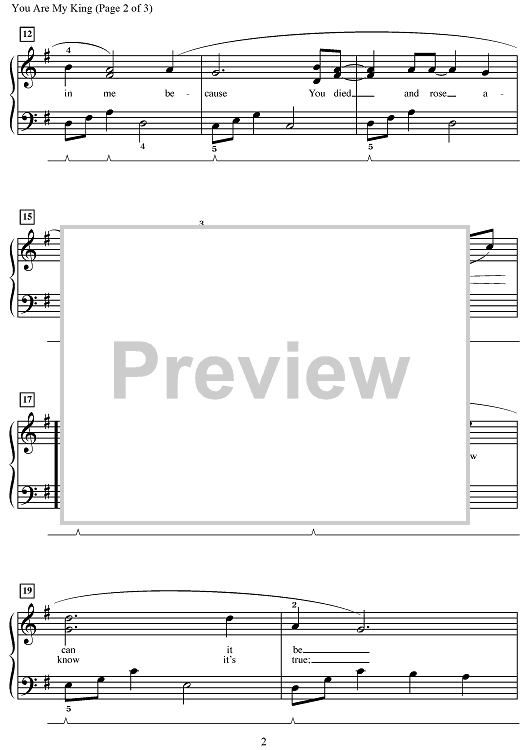 Digital Sheet Music for You Are My King (Amazing Love) by Billy James Foote, Tom Gerou, Victor Labenske scored for Piano/Vocal; id:498011