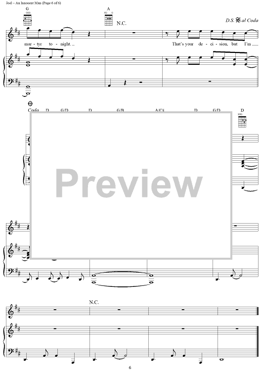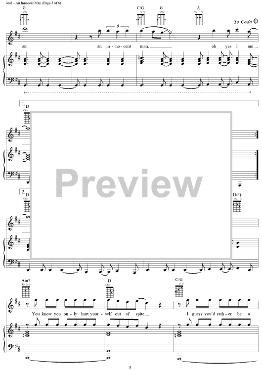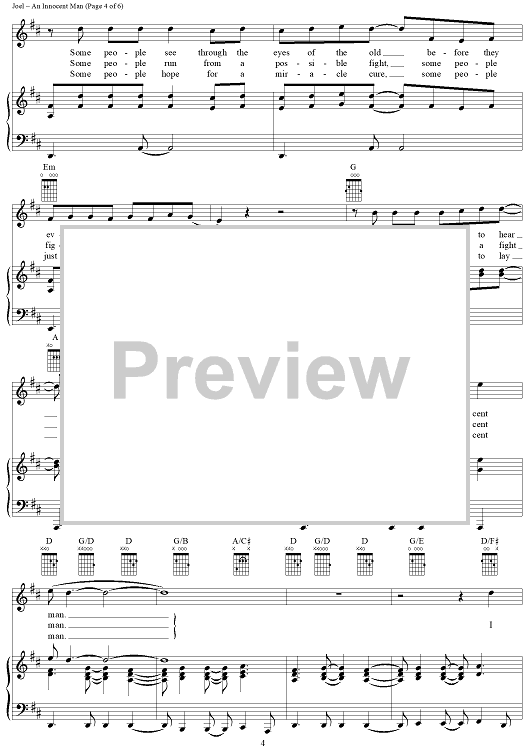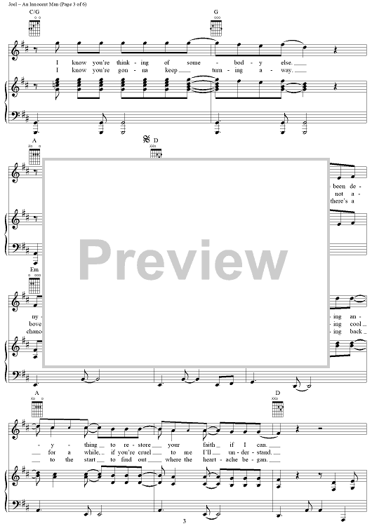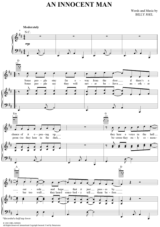 Digital Sheet Music for An Innocent Man by Billy Joel scored for Piano/Vocal/Chords; id:403215