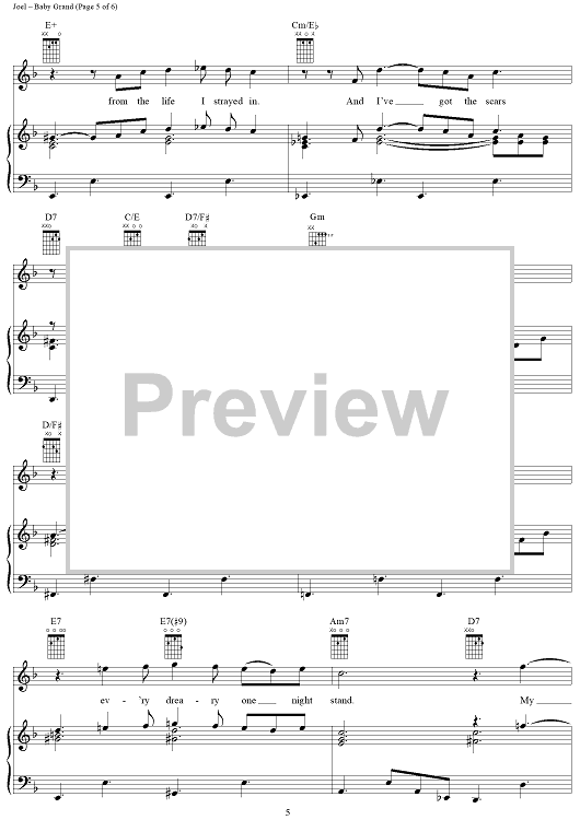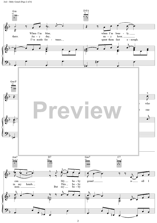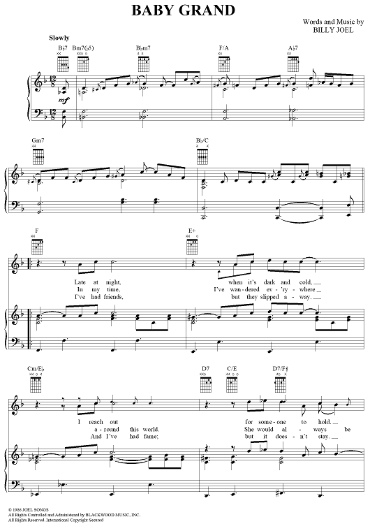 Digital Sheet Music for Baby Grand by Billy Joel scored for Piano/Vocal/Chords; id:366048
