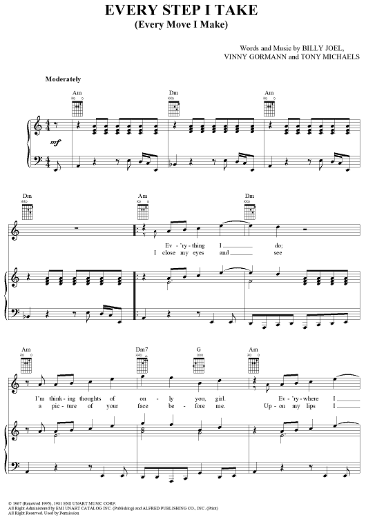 Digital Sheet Music for Every Step I Take (Every Move I Make) by Billy Joel, Vinny Gormann, Tony Michaels scored for Piano/Vocal/Chords; id:403194