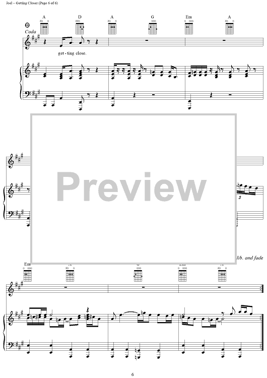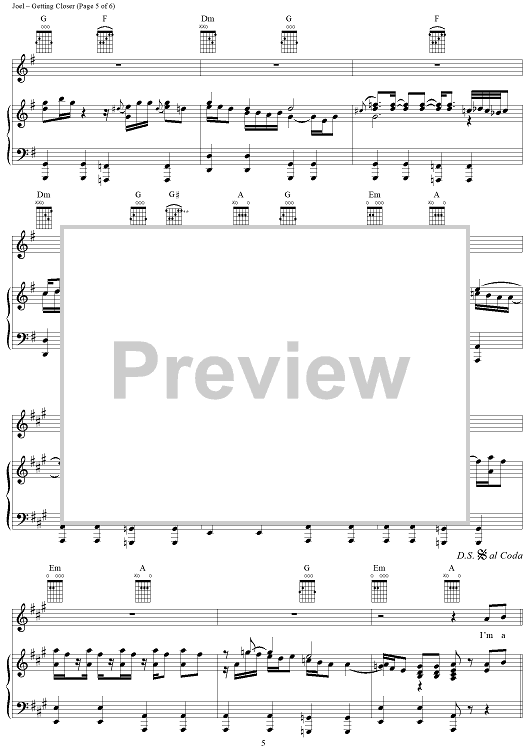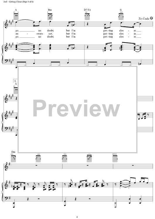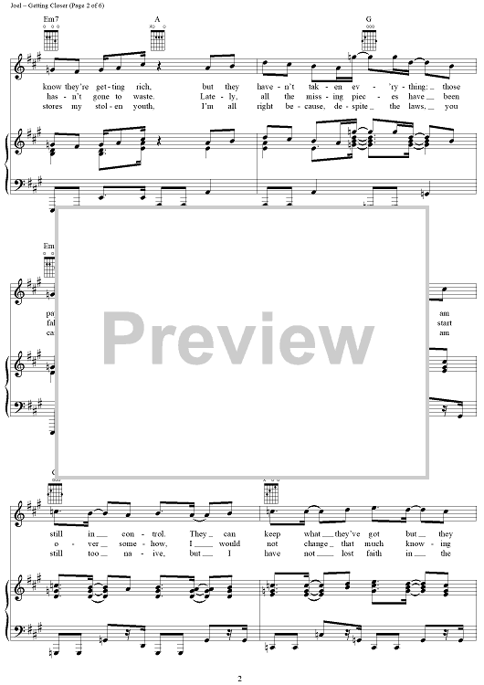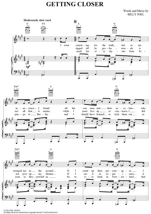 Digital Sheet Music for Getting Closer by Billy Joel scored for Piano/Vocal/Chords; id:403213