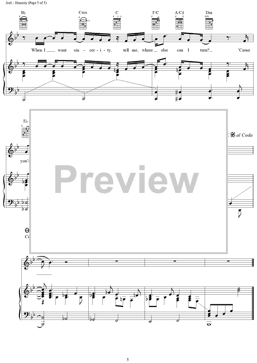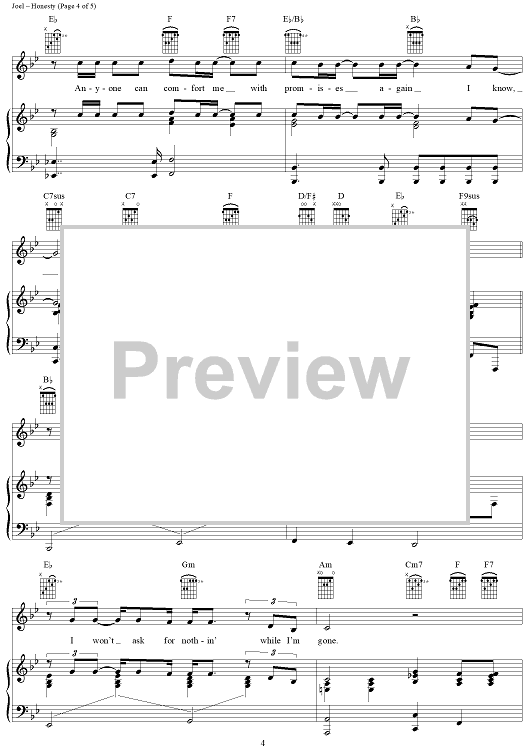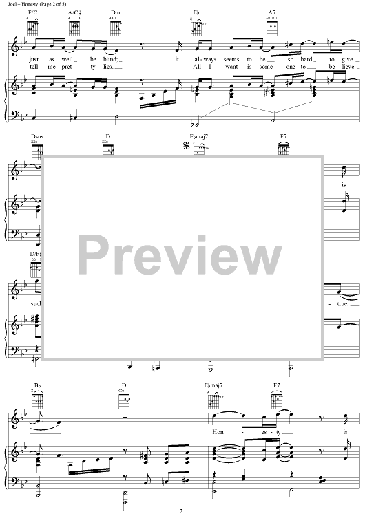 Digital Sheet Music for Honesty by Billy Joel scored for Piano/Vocal/Chords; id:367169