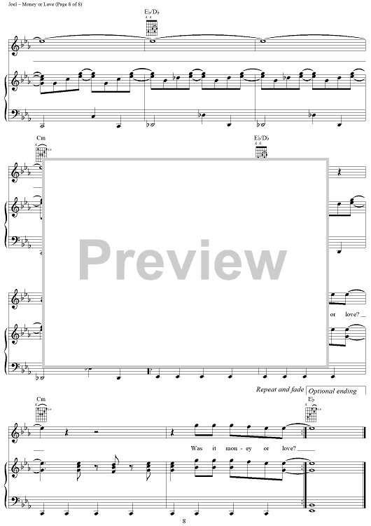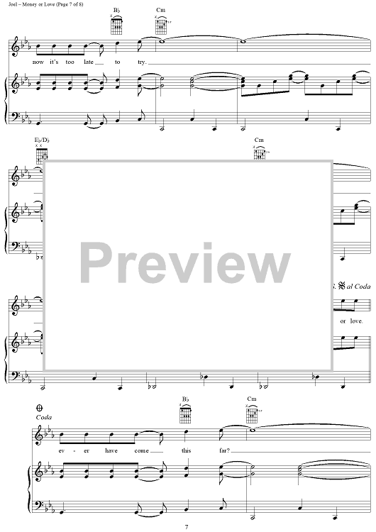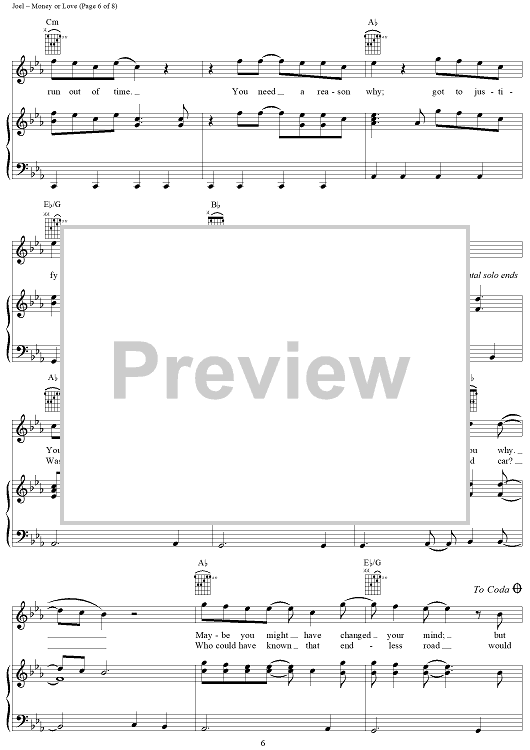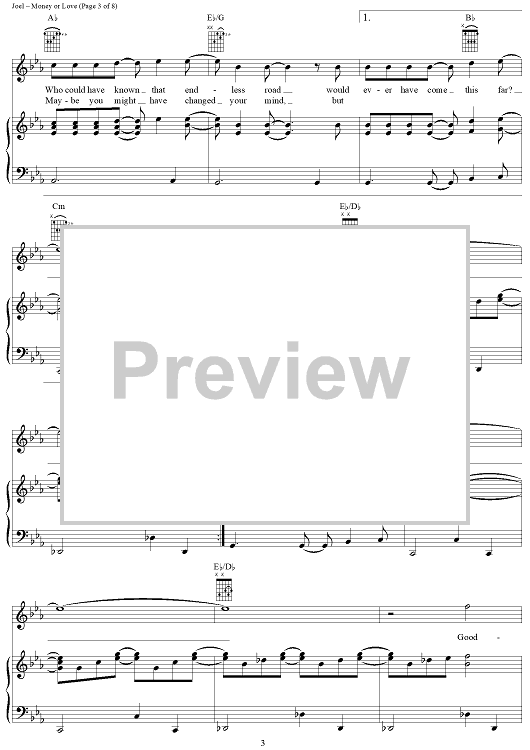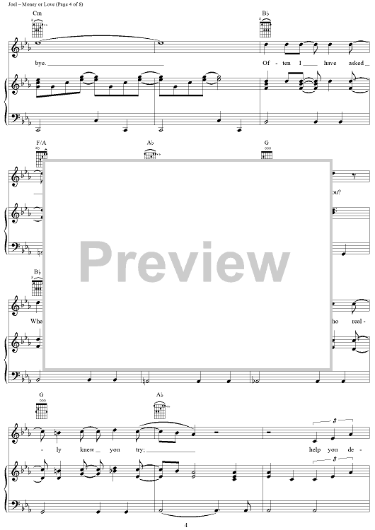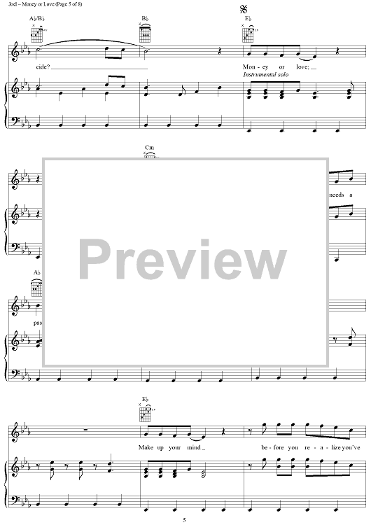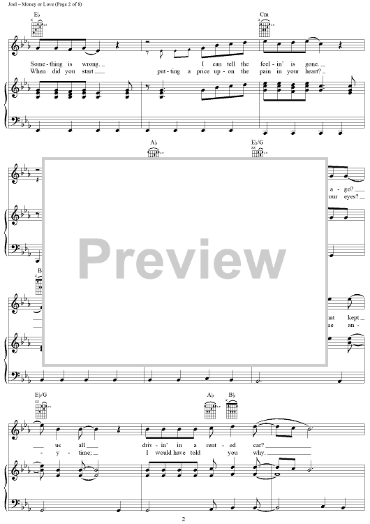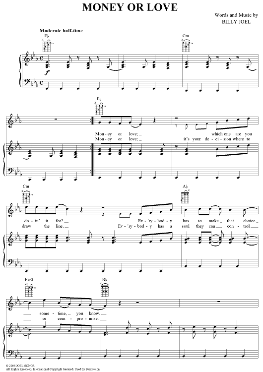 Digital Sheet Music for Money or Love by Billy Joel scored for Piano/Vocal/Chords; id:403199
