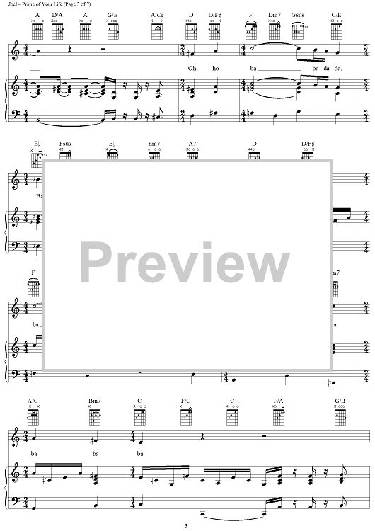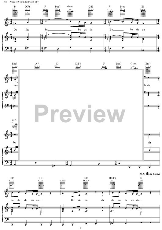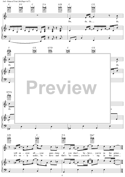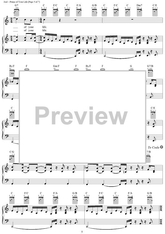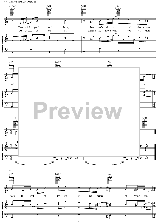 Digital Sheet Music for Prime of Your Life by Billy Joel scored for Piano/Vocal/Chords; id:403202
