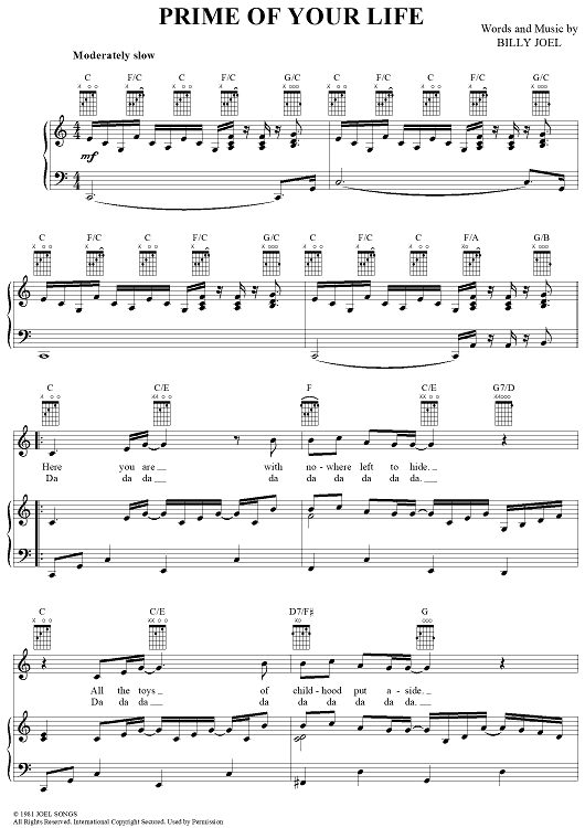"Prime of Your Life" Sheet Music by Billy Joel