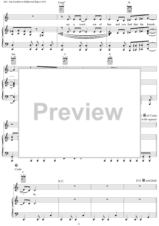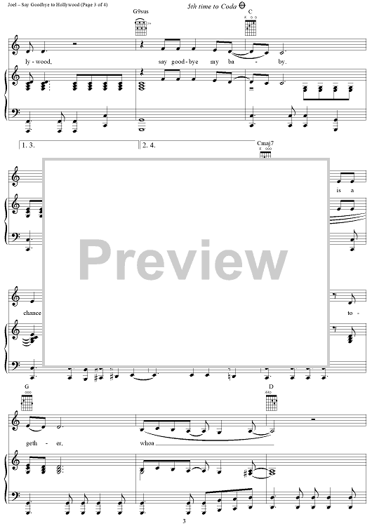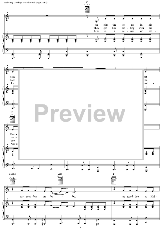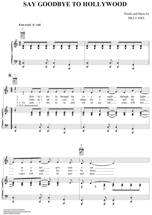 Digital Sheet Music for Say Goodbye to Hollywood by Billy Joel scored for Piano/Vocal/Chords; id:403241