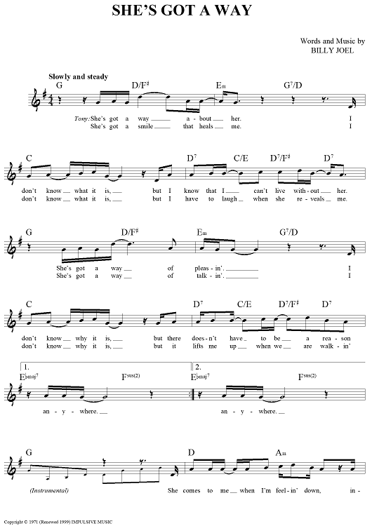 Digital Sheet Music for She's Got a Way by Billy Joel scored for Lead Sheet; id:447305
