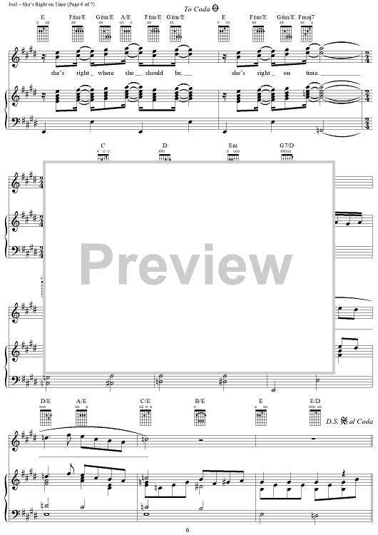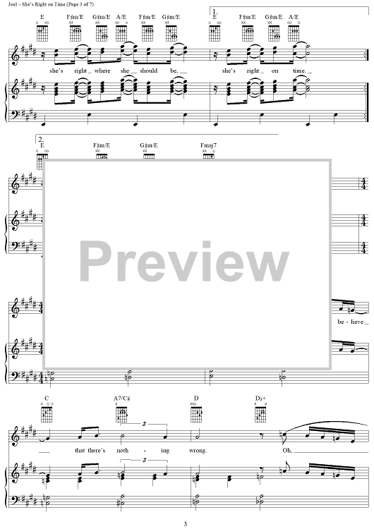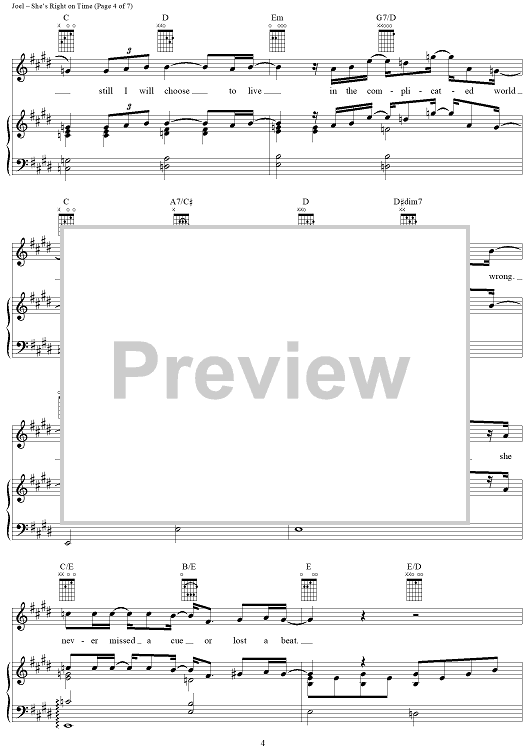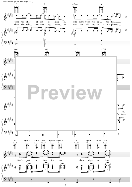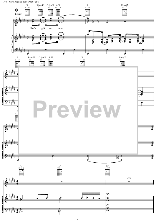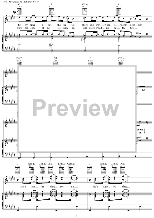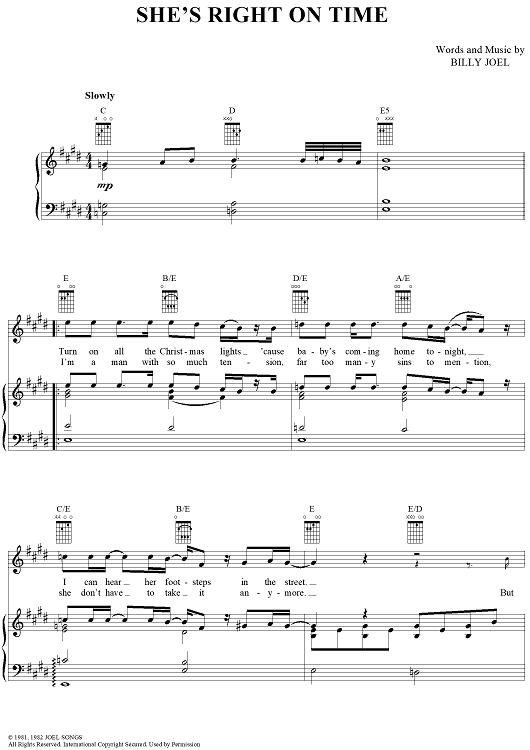Digital Sheet Music for She's Right on Time by Billy Joel scored for Piano/Vocal/Chords; id:403221