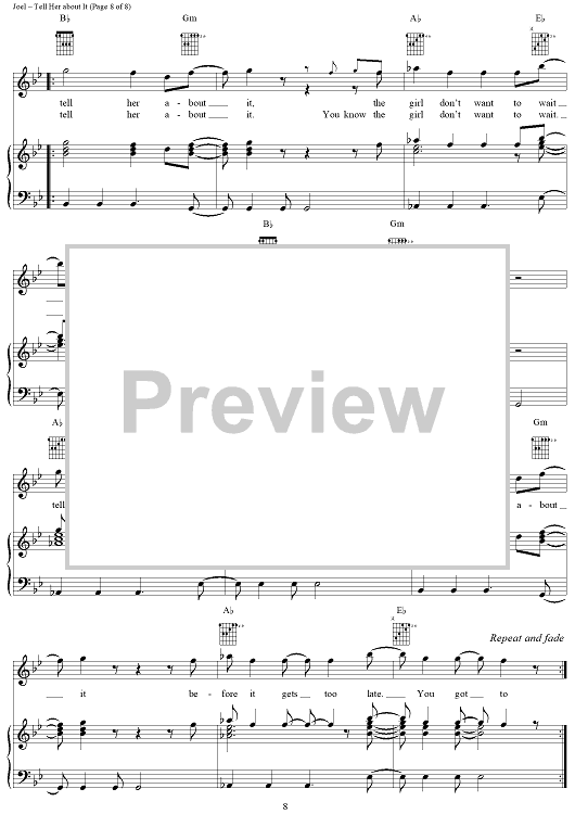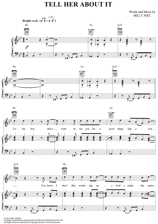 Digital Sheet Music for Tell Her About It by Billy Joel scored for Piano/Vocal/Chords; id:403310