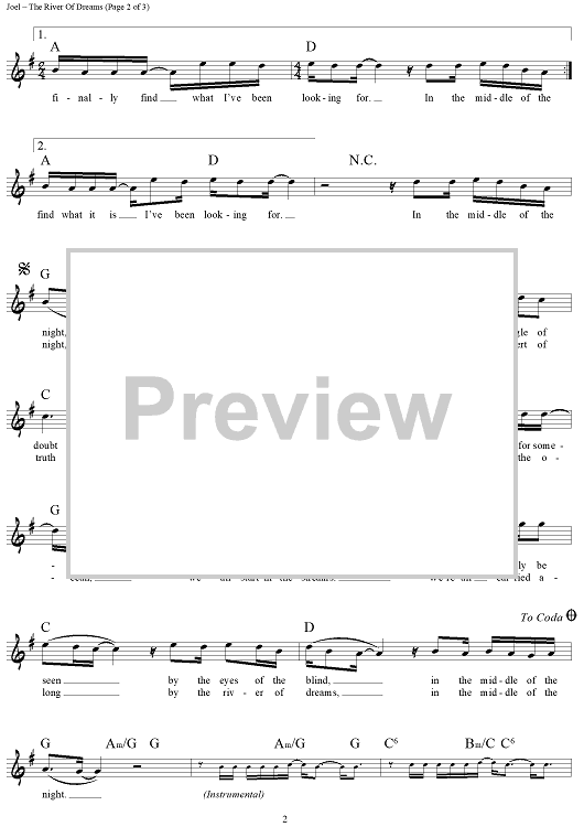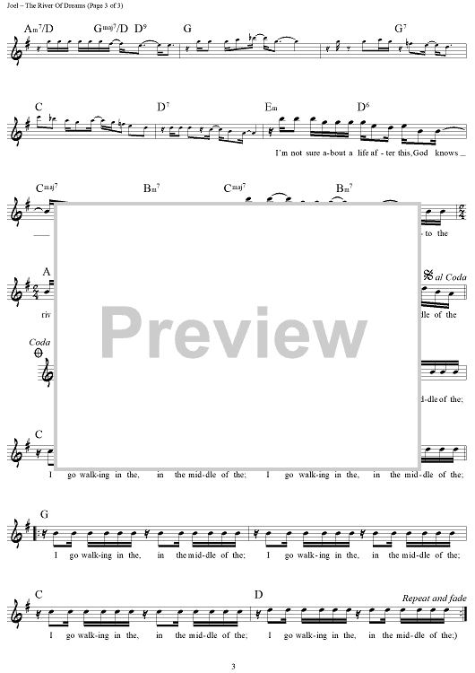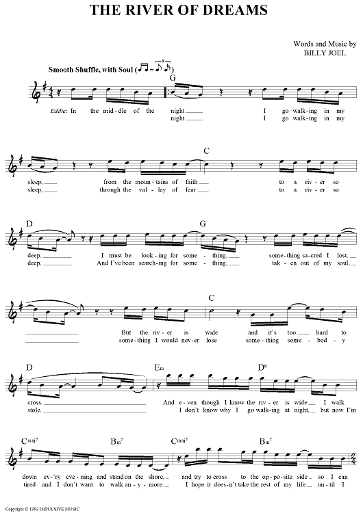Digital Sheet Music for The River of Dreams by Billy Joel scored for Lead Sheet; id:447306