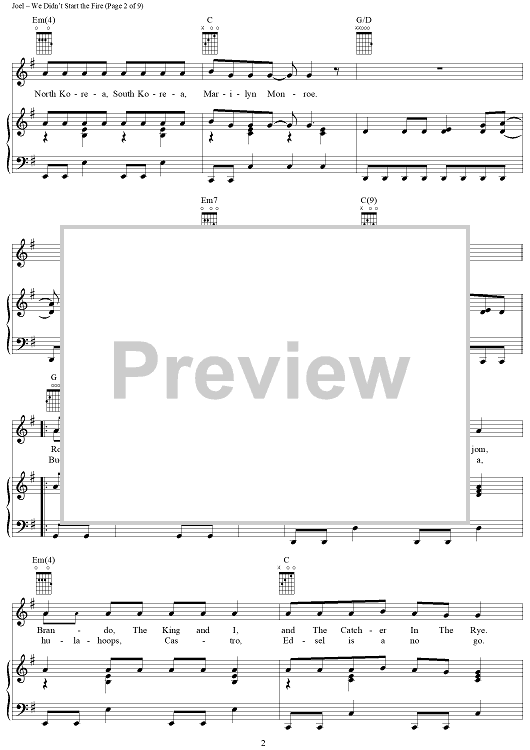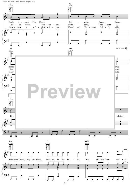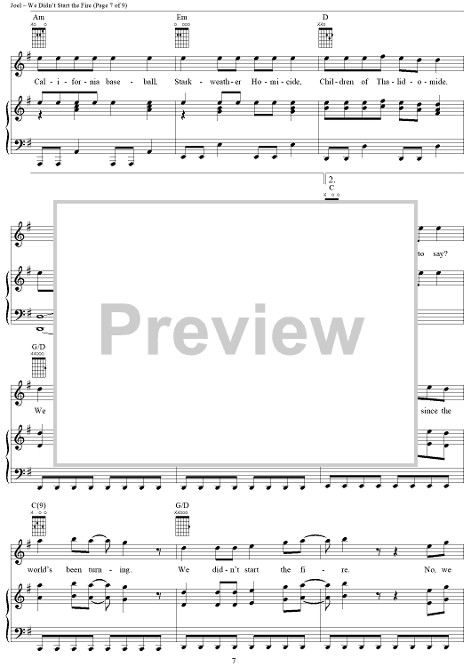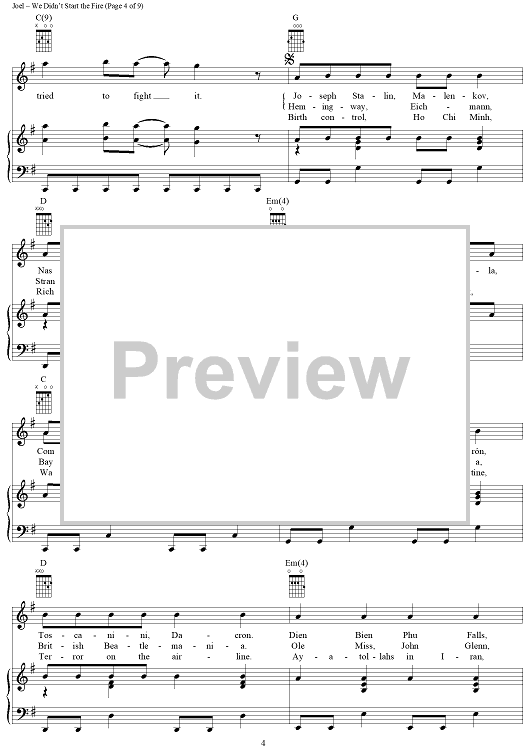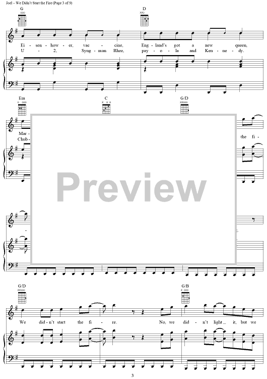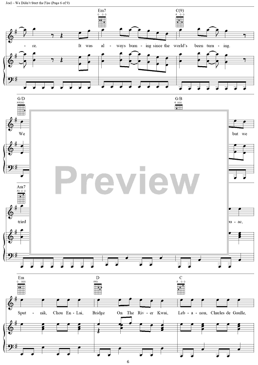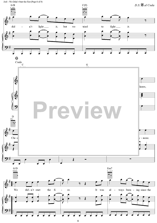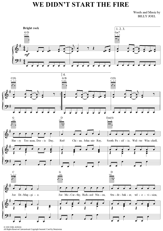Digital Sheet Music for We Didn't Start the Fire by Billy Joel scored for Piano/Vocal/Chords; id:403223