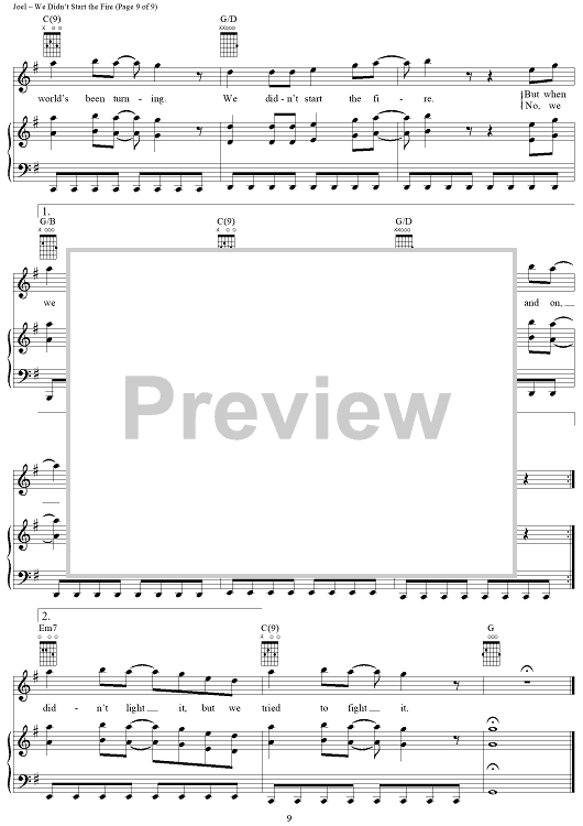"We Didn't Start the Fire" Sheet Music by Billy Joel