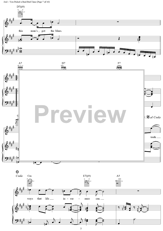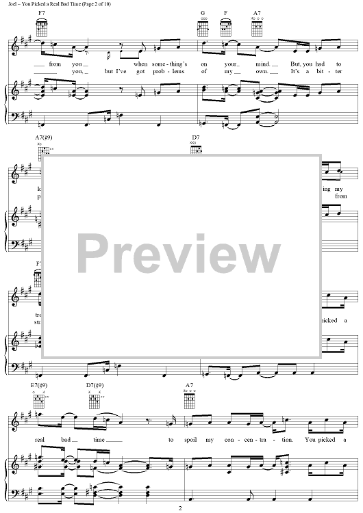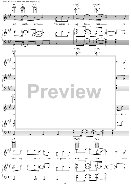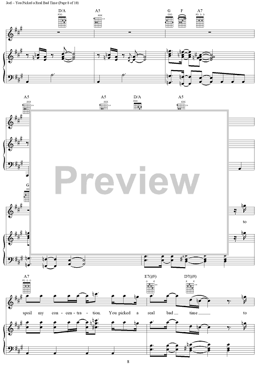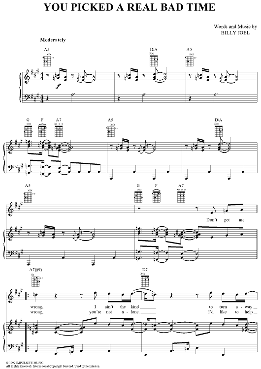 Digital Sheet Music for You Picked a Real Bad Time by Billy Joel scored for Piano/Vocal/Chords; id:403198