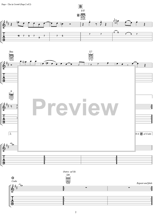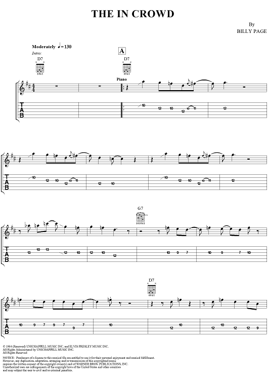 Digital Sheet Music for The In Crowd by Billy Page, Dobie Gray, Ramsey Lewis scored for Guitar Tab; id:285036
