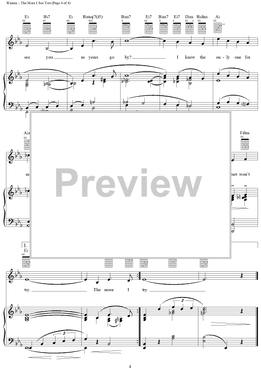 Digital Sheet Music for The More I See You by Harry Warren, Mack Gordon, Michael Buble scored for Piano/Vocal/Chords; id:235981