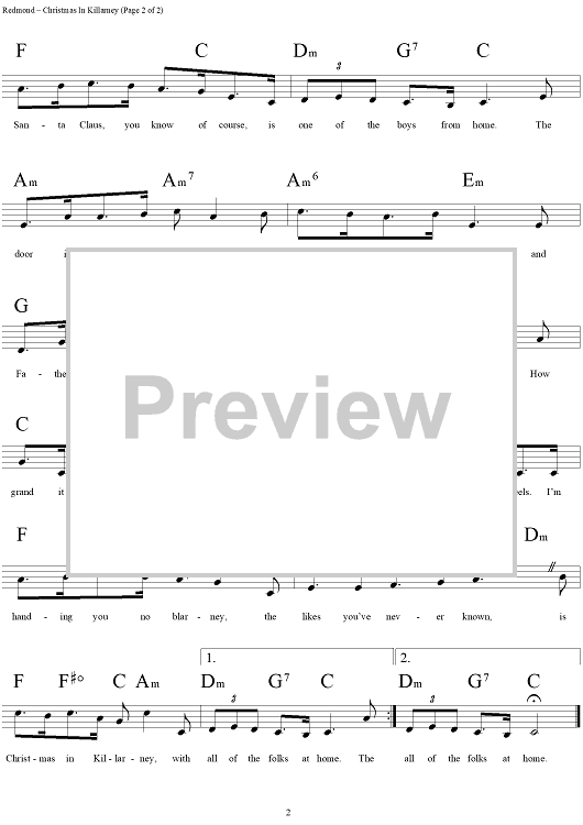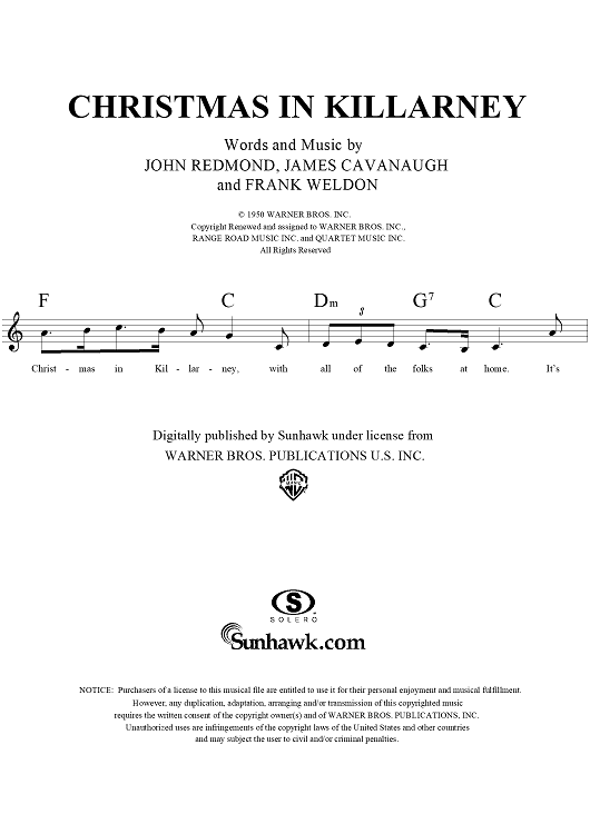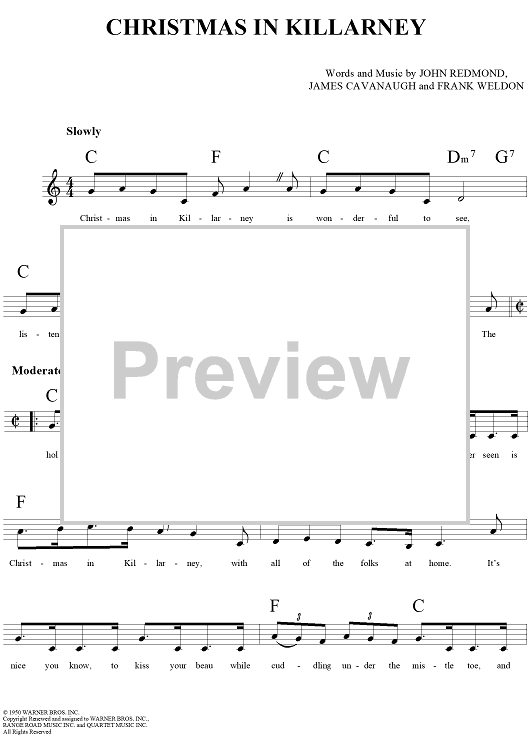 Digital Sheet Music for Christmas in Killarney by Bing Crosby, John Redmond, Frank Weldon, James Cavanaugh scored for Lead Sheet; id:118724