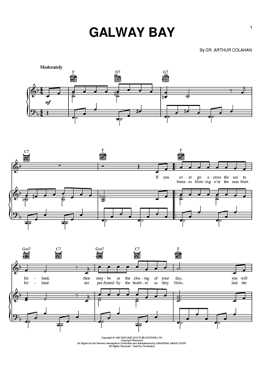 Digital Sheet Music for Galway Bay by Bing Crosby, Arthur Colahan scored for Piano/Vocal/Chords; id:380322