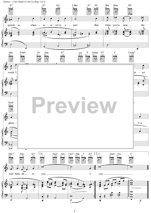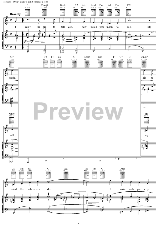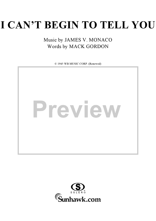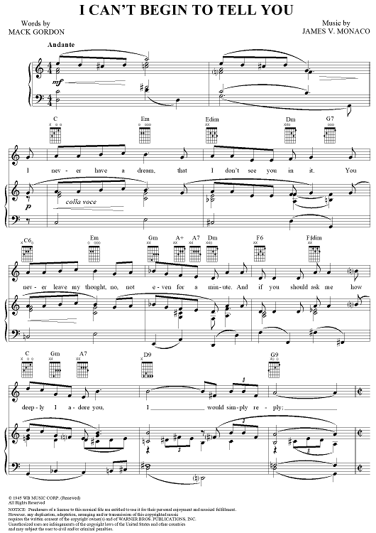 Digital Sheet Music for I Can't Begin to Tell You by Bing Crosby, James V. Monaco, Mack Gordon scored for Piano/Vocal/Chords; id:252500